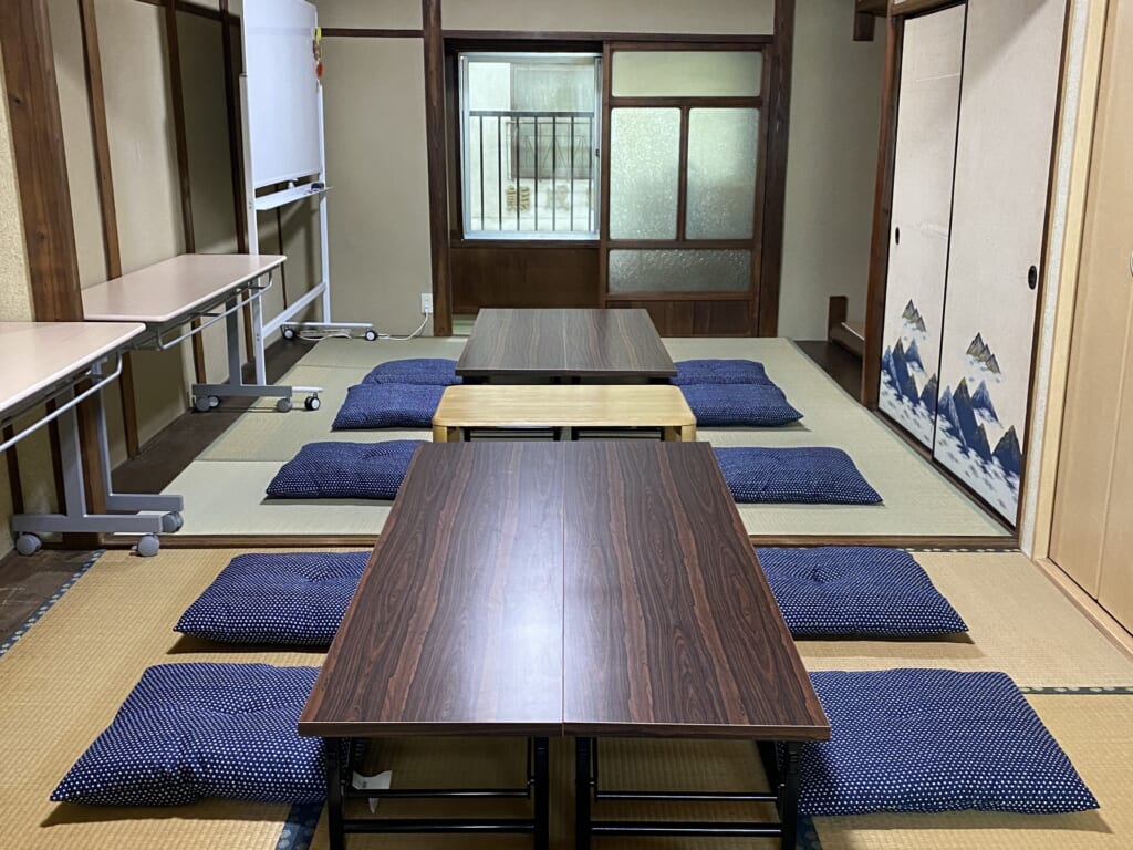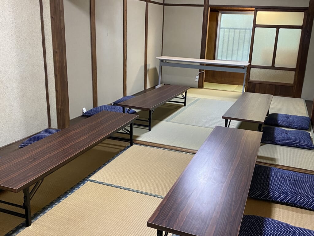 1)レンタルスペースは、お店(アートギャラリー)の2階にある10畳の和室で、定員は10〜12名ほどです。