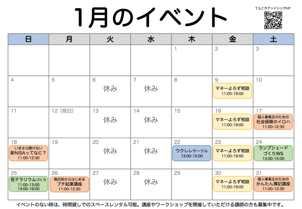 てらこやアンドシングでは、1月に以下のイベントを開催いたします。